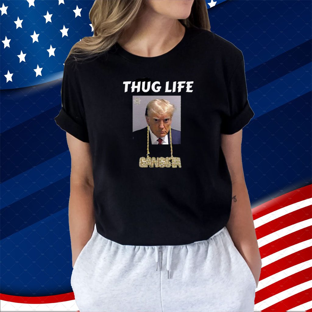 Thug Life Trump Mugshot, Gangsta Gold Chain Bling Drip Trump Shirt